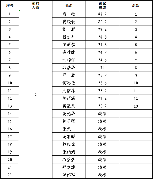 [ 2021-12-16 ] 2021年三明市華城置業(yè)有限公司招聘物業(yè)經(jīng)理面試成績及排名