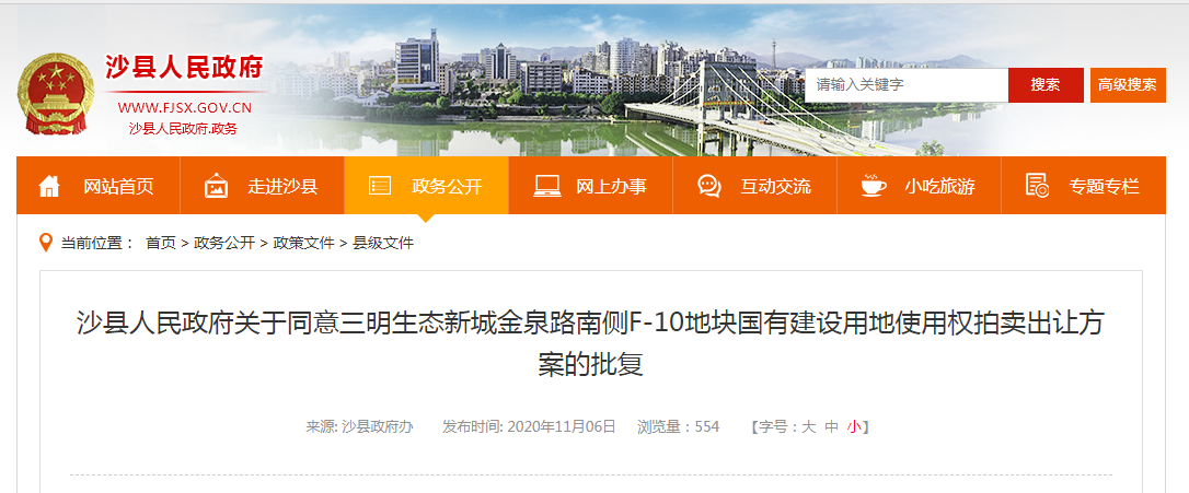 三明生態(tài)新城金泉路南側(cè)F-10地塊國有建設(shè)用地使用權(quán)拍賣情況公告