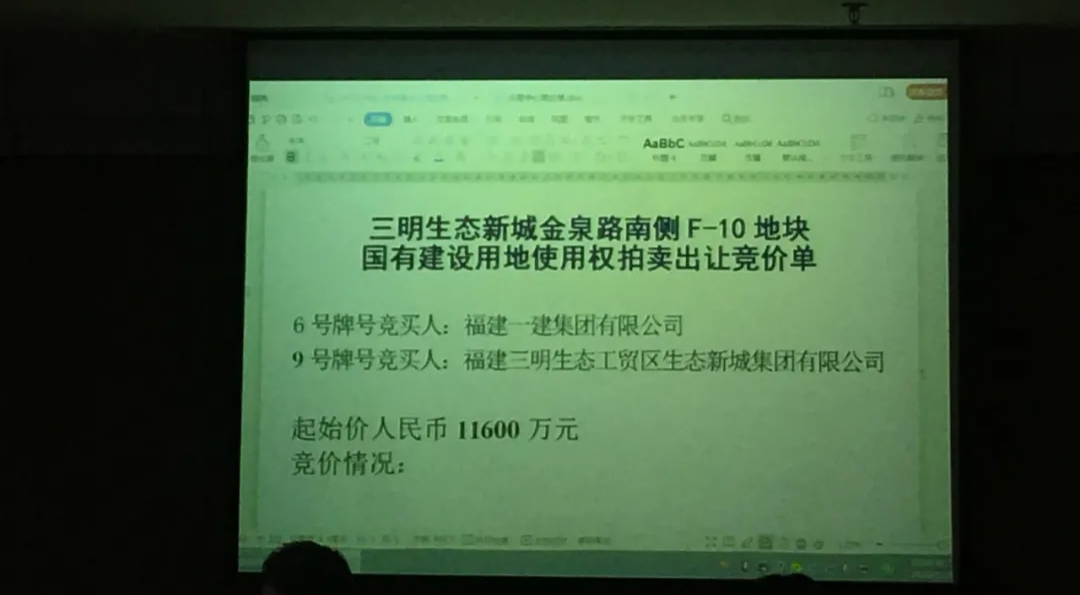 2020年12月1日上午,三明生態(tài)新城金泉路南側(cè)F-10地塊在沙縣公共資源交易中心第一交易廳進行拍賣。