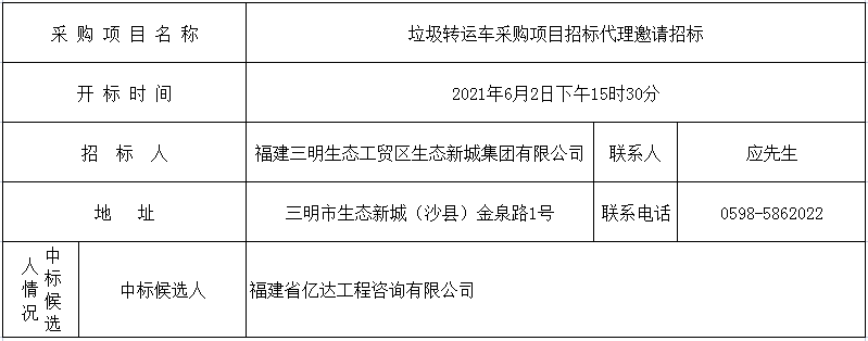 垃圾轉(zhuǎn)運(yùn)車采購(gòu)項(xiàng)目招標(biāo)代理邀請(qǐng)招標(biāo)比選結(jié)果公示