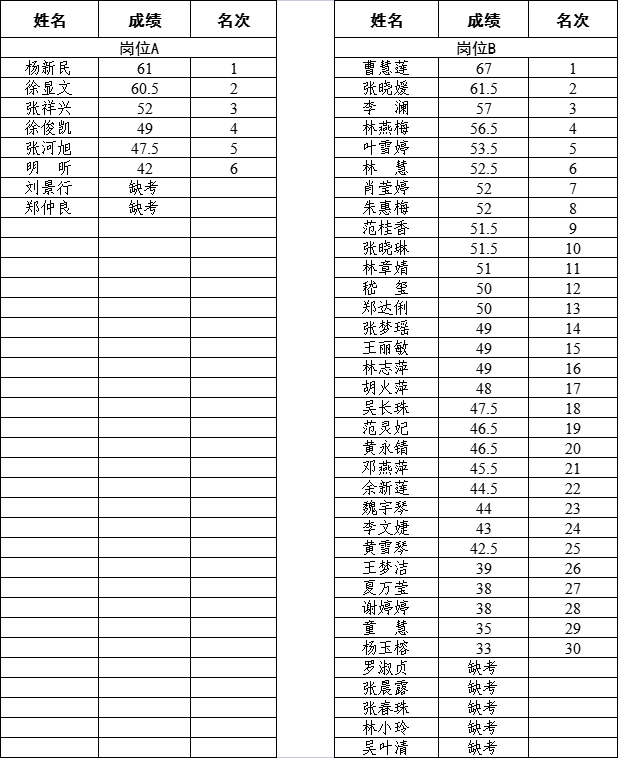 2022年福建三明生態(tài)工貿(mào)區(qū)生態(tài)新城集團(tuán)有限公司公開招聘財(cái)務(wù)工作人員筆試成績排名