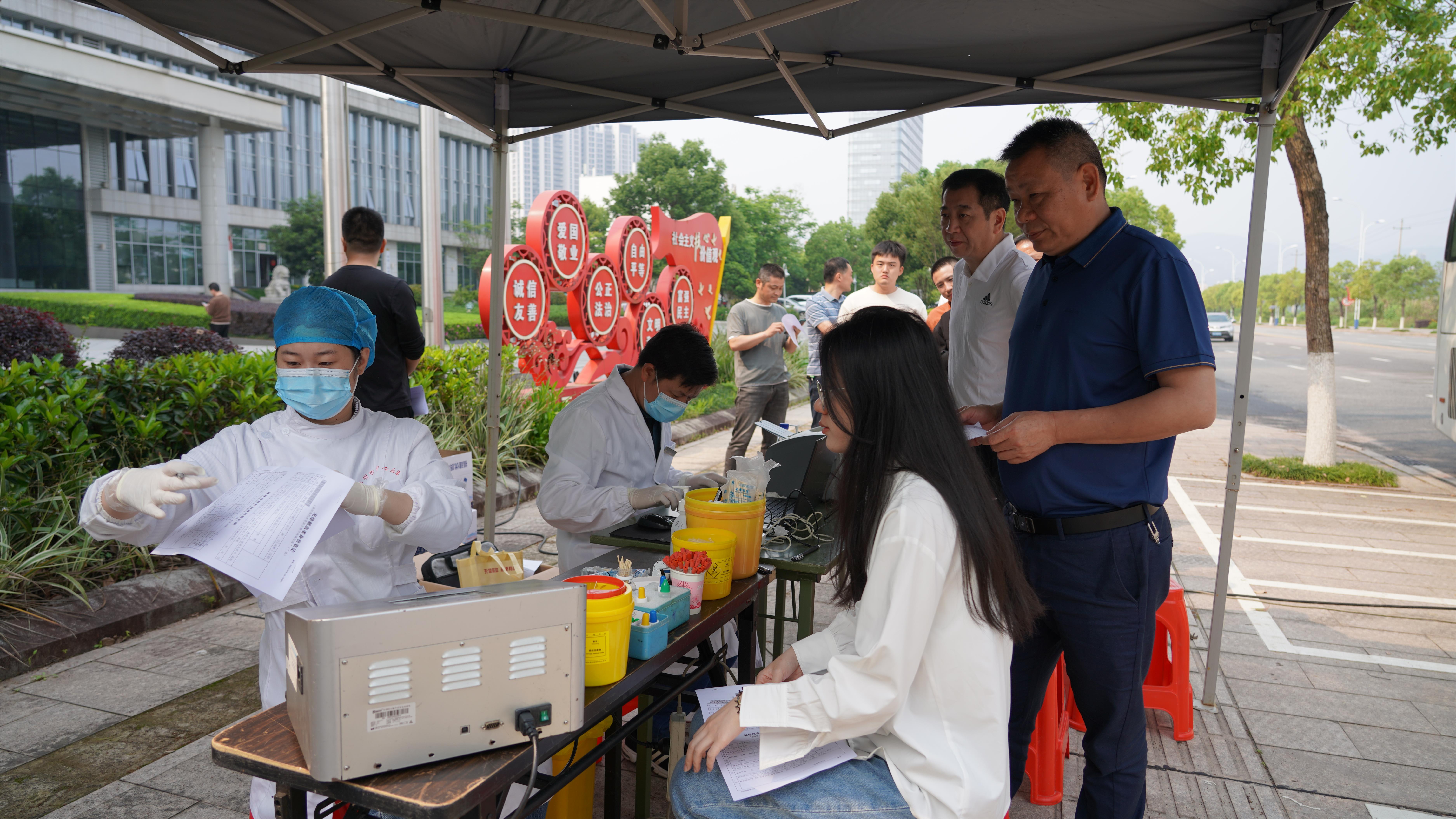 活動現(xiàn)場,在工作人員的指導下,無償獻血者依次完成填表登記、健康征詢、信息采集和血樣檢測等流程,符合獻血標準的人員依次排隊卷起袖子,獻出自己的一份愛心。