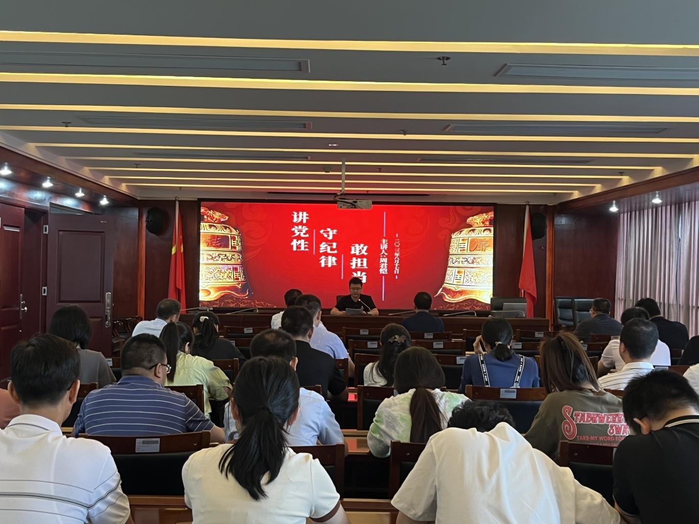 為深入學(xué)習(xí)貫徹黨的二十大精神,進(jìn)一步推進(jìn)黨風(fēng)廉政建設(shè),切實(shí)增強(qiáng)黨員干部廉潔自律意識和拒腐防變能力,持續(xù)鍛造忠誠干凈擔(dān)當(dāng)?shù)年?duì)伍,8月17日,海西三明生態(tài)工貿(mào)區(qū)黨工委委員、管委會副主任、機(jī)關(guān)紀(jì)委書記周君愷以《講黨性、守紀(jì)律、敢擔(dān)當(dāng)》為題,為全體黨員干部職工上了一堂觸及靈魂、發(fā)人深省的廉政黨課。