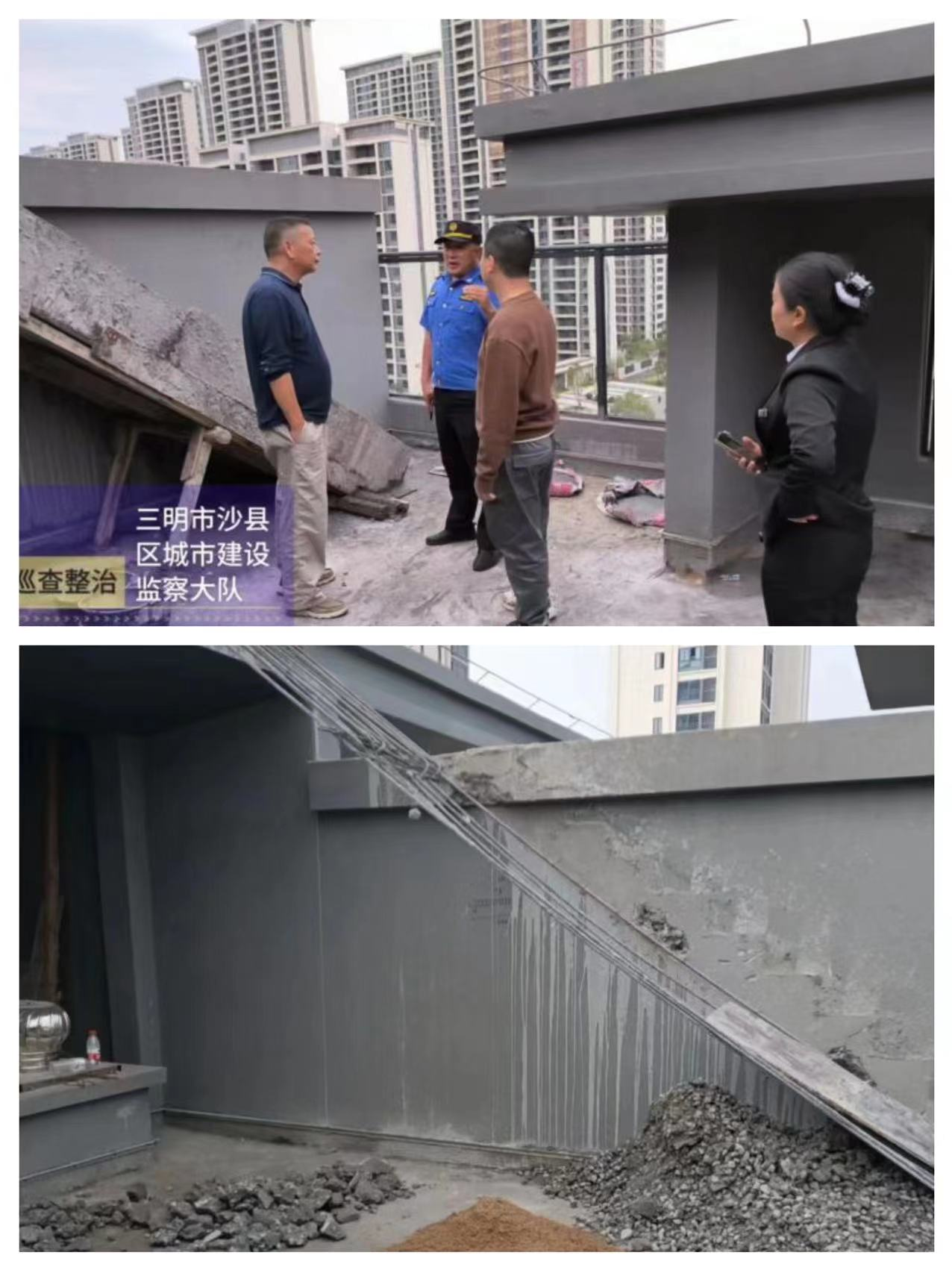 升龍?jiān)?棟樓頂私設(shè)鋼筋已被拆除