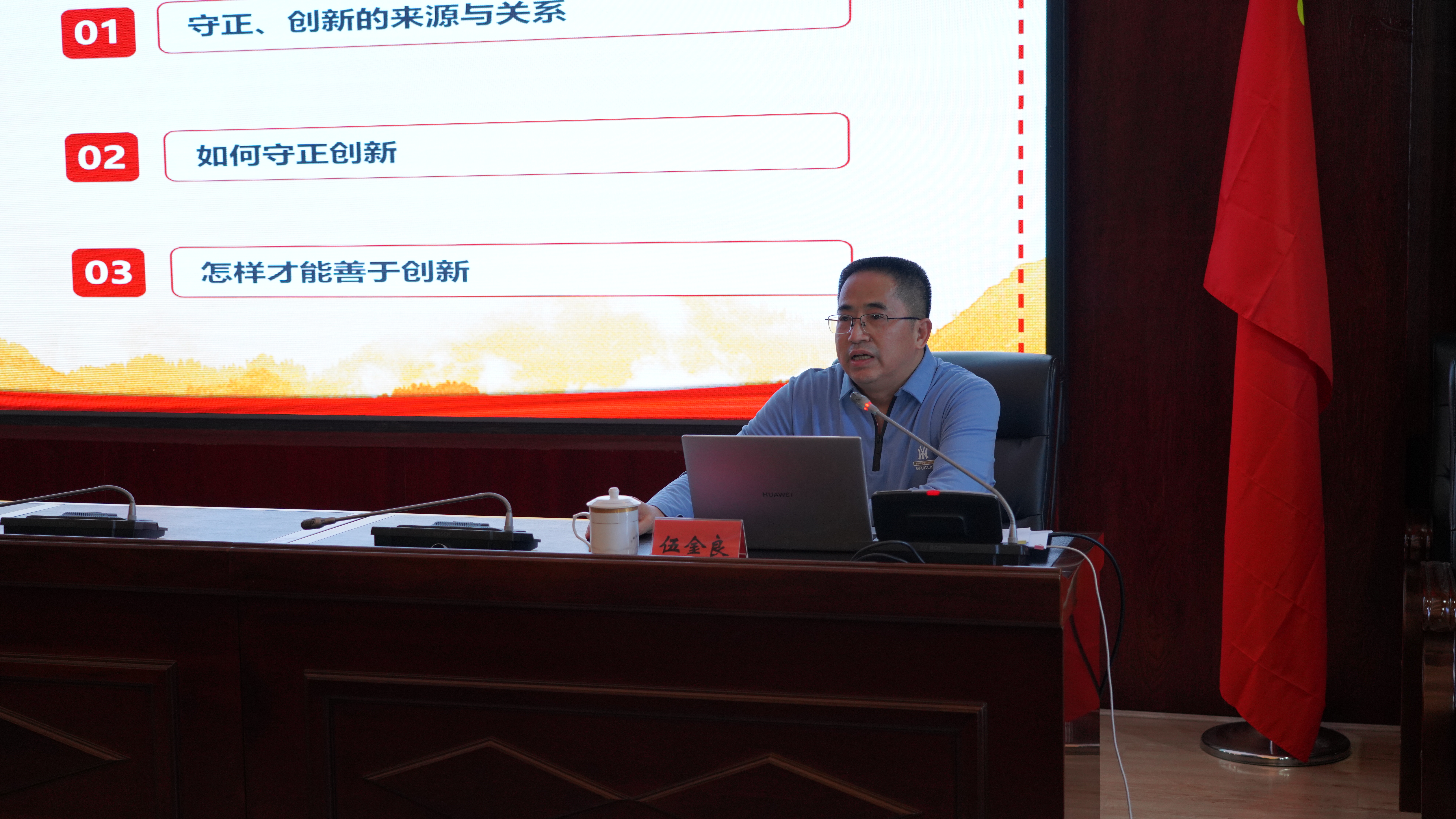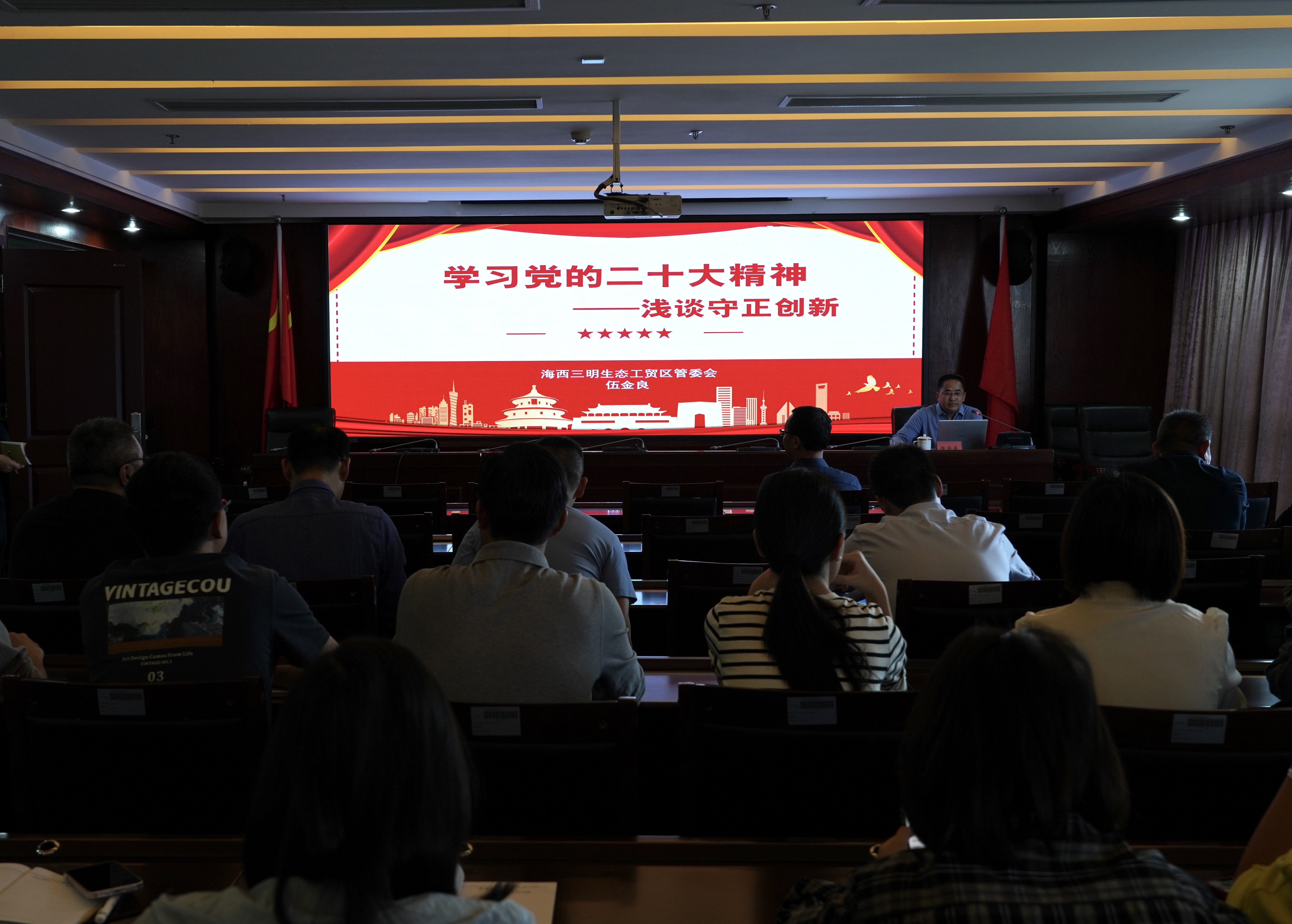 為推動主題教育走深走實,2023年11月6日下午,海西三明生態(tài)工貿(mào)區(qū)管委會經(jīng)濟(jì)發(fā)展局局長、三級調(diào)研員伍金良以《學(xué)習(xí)黨的二十大精神—淺談守正創(chuàng)新》為題為管委會全體黨員干部講授主題教育專題黨課。