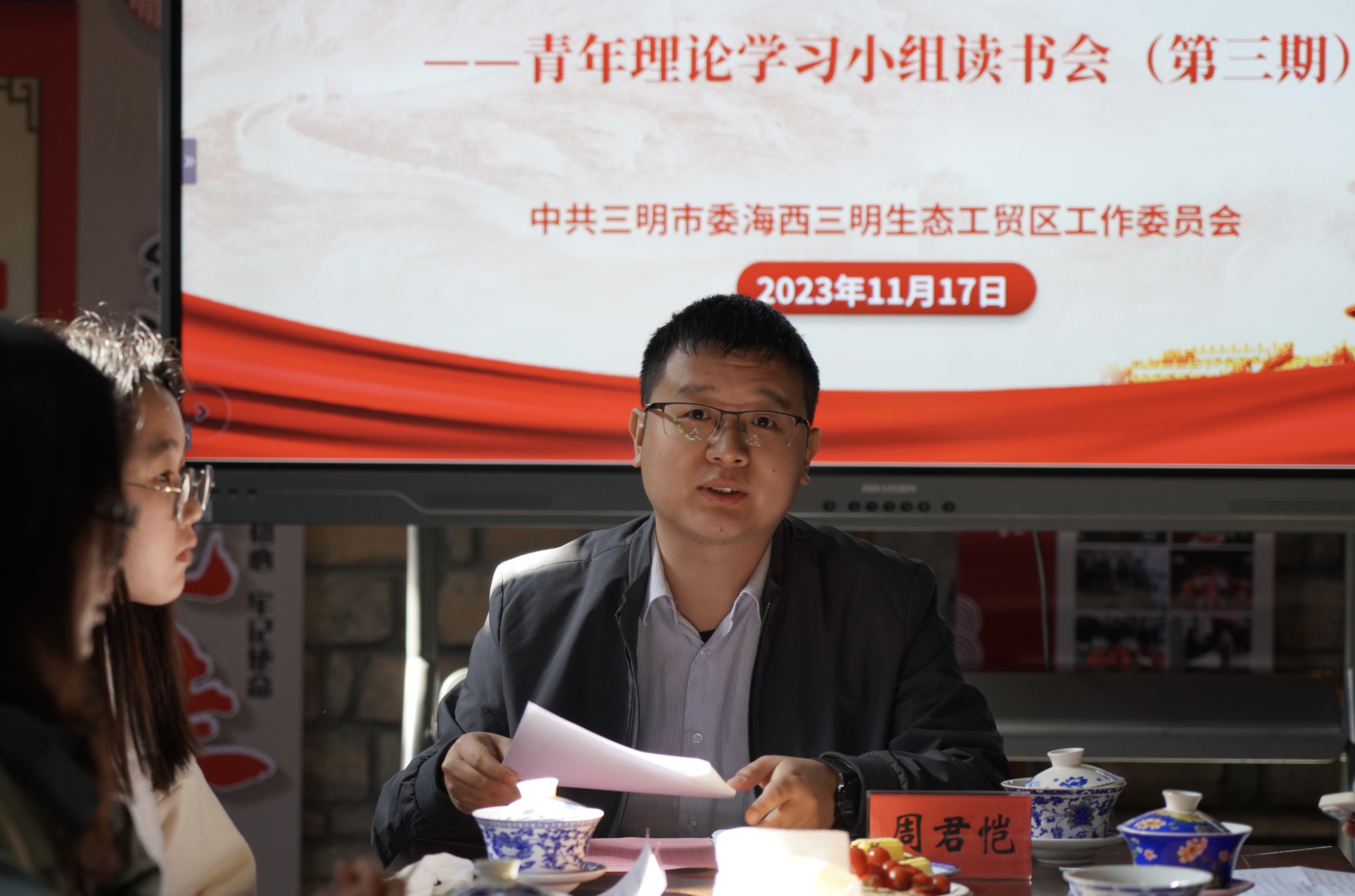 為推動(dòng)學(xué)習(xí)貫徹習(xí)近平新時(shí)代中國(guó)特色社會(huì)主義思想主題教育走深走實(shí),引導(dǎo)廣大青年干部在以學(xué)鑄魂、以學(xué)增智、以學(xué)正風(fēng)、以學(xué)促干上下功夫。11月17日,海西三明生態(tài)工貿(mào)區(qū)黨工委以“學(xué)習(xí)新思想 閱讀悅青春”為主題舉辦了第三期讀書(shū)分享會(huì)活動(dòng)。園區(qū)各黨支部,管委會(huì)各辦(局、中心)優(yōu)秀青年參加。
