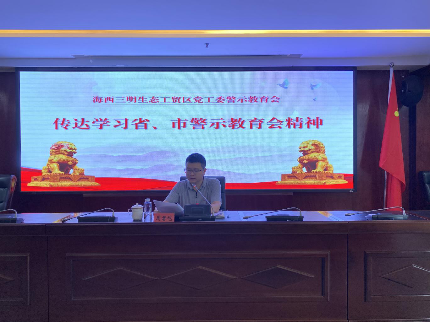 舉行工貿(mào)區(qū)黨紀(jì)學(xué)習(xí)教育警示教育會(huì),深入學(xué)習(xí)貫徹習(xí)近平總書記關(guān)于全面加強(qiáng)黨的紀(jì)律建設(shè)的重要論述以及省、市警示教育會(huì)精神,組織觀看反腐專題片《持續(xù)發(fā)力縱深推進(jìn)》(第三集),管委會(huì)機(jī)關(guān)紀(jì)委書記周君愷主持會(huì)議并講話,教育引導(dǎo)廣大黨員干部在廉潔上“管得住手腳”、在事業(yè)上“放得開手腳”,以作風(fēng)轉(zhuǎn)變和實(shí)績實(shí)效檢驗(yàn)黨紀(jì)學(xué)習(xí)教育成果。