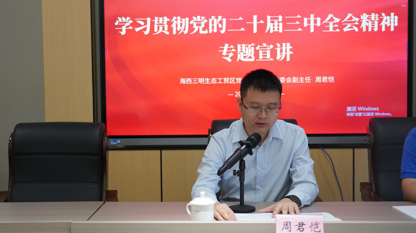 為深入學習宣傳貫徹黨的二十屆三中全會精神,9月26日上午,海西三明生態(tài)工貿(mào)區(qū)黨工委委員、管委會副主任周君愷赴華東師范大學附屬三明中學宣講黨的二十屆三中全會精神。