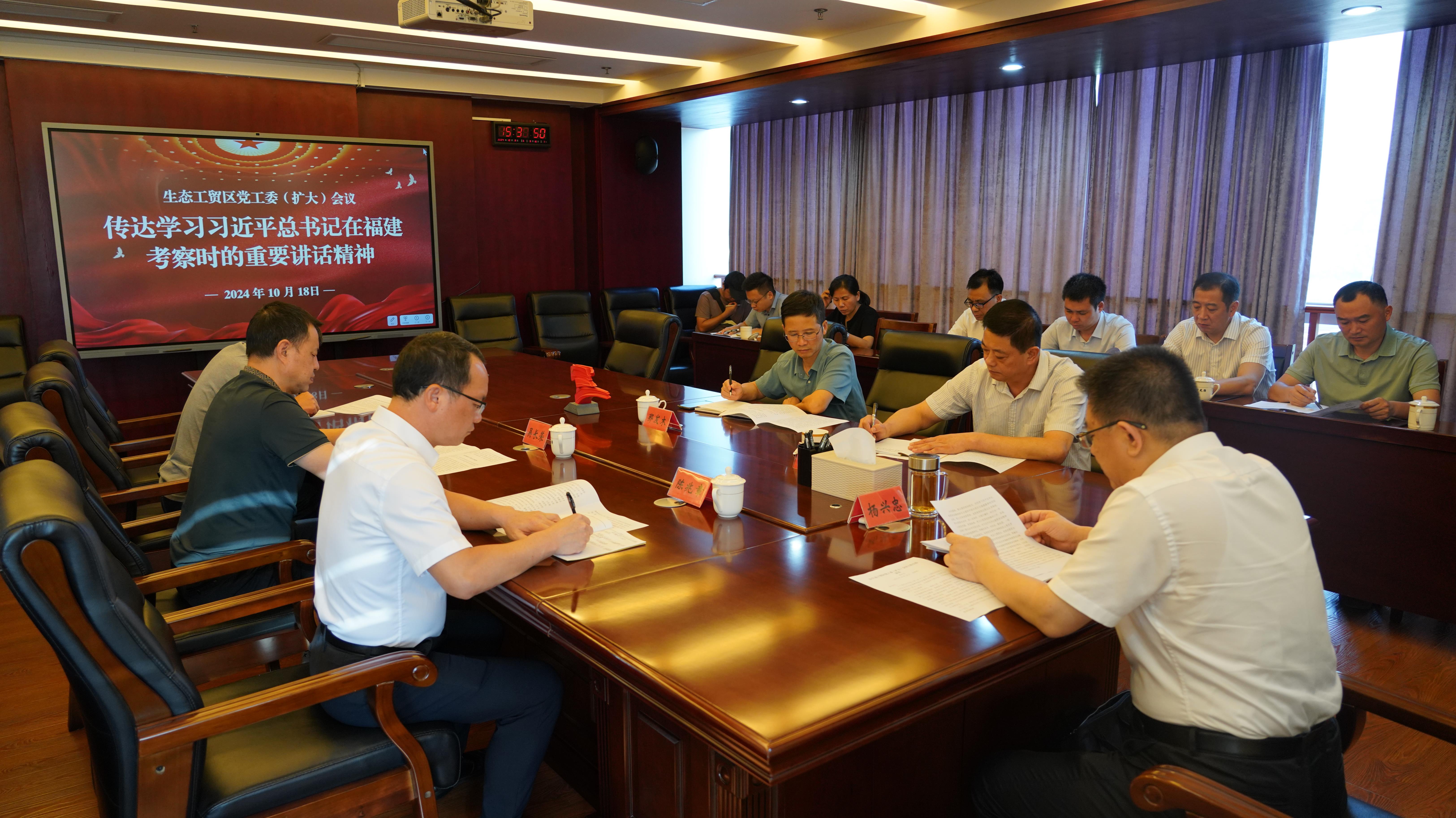 10月18日,市委副書記、生態(tài)工貿(mào)區(qū)黨工委書記、管委會主任楊興忠主持召開生態(tài)工貿(mào)區(qū)黨工委(擴大)會議,傳達學習習近平總書記在福建考察時的重要講話精神,以及省委常委會(擴大)會議、全省領導干部大會、市委常委會(擴大)會議精神,研究生態(tài)工貿(mào)區(qū)初步貫徹意見。