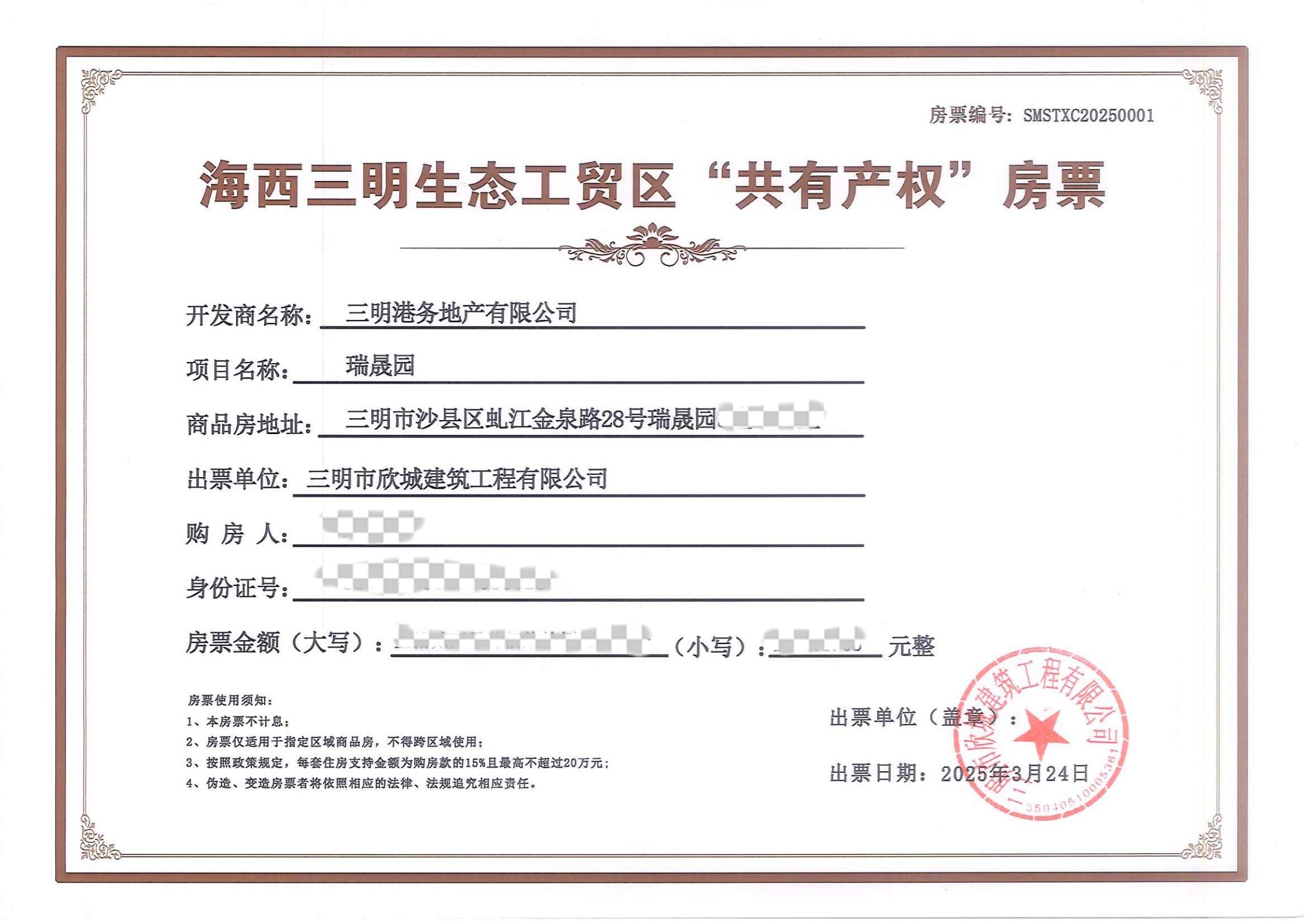 三明生態(tài)新城首張“共有產(chǎn)權(quán)”房票