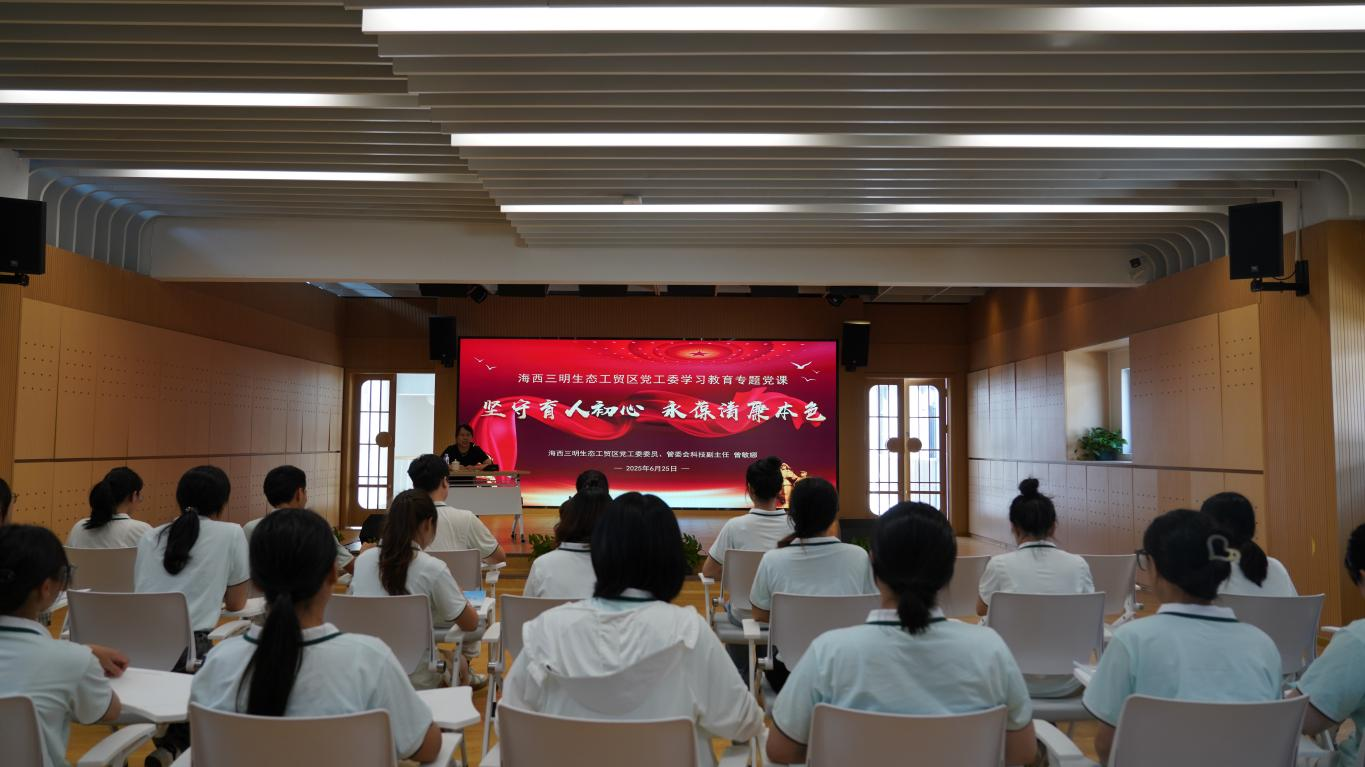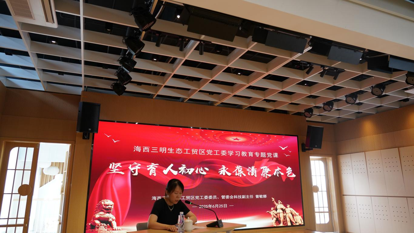 為推動(dòng)深入貫徹中央八項(xiàng)規(guī)定精神學(xué)習(xí)教育走深走實(shí),全面加強(qiáng)師德師風(fēng)建設(shè),營造風(fēng)清氣正的教書育人環(huán)境。6月25日下午,海西三明生態(tài)工貿(mào)區(qū)黨工委委員、管委會(huì)科技副主任曾敏娜以《堅(jiān)守育人初心 永葆清廉本色》為題為生態(tài)新城康養(yǎng)城幼兒園黨員教師授專題黨課。
