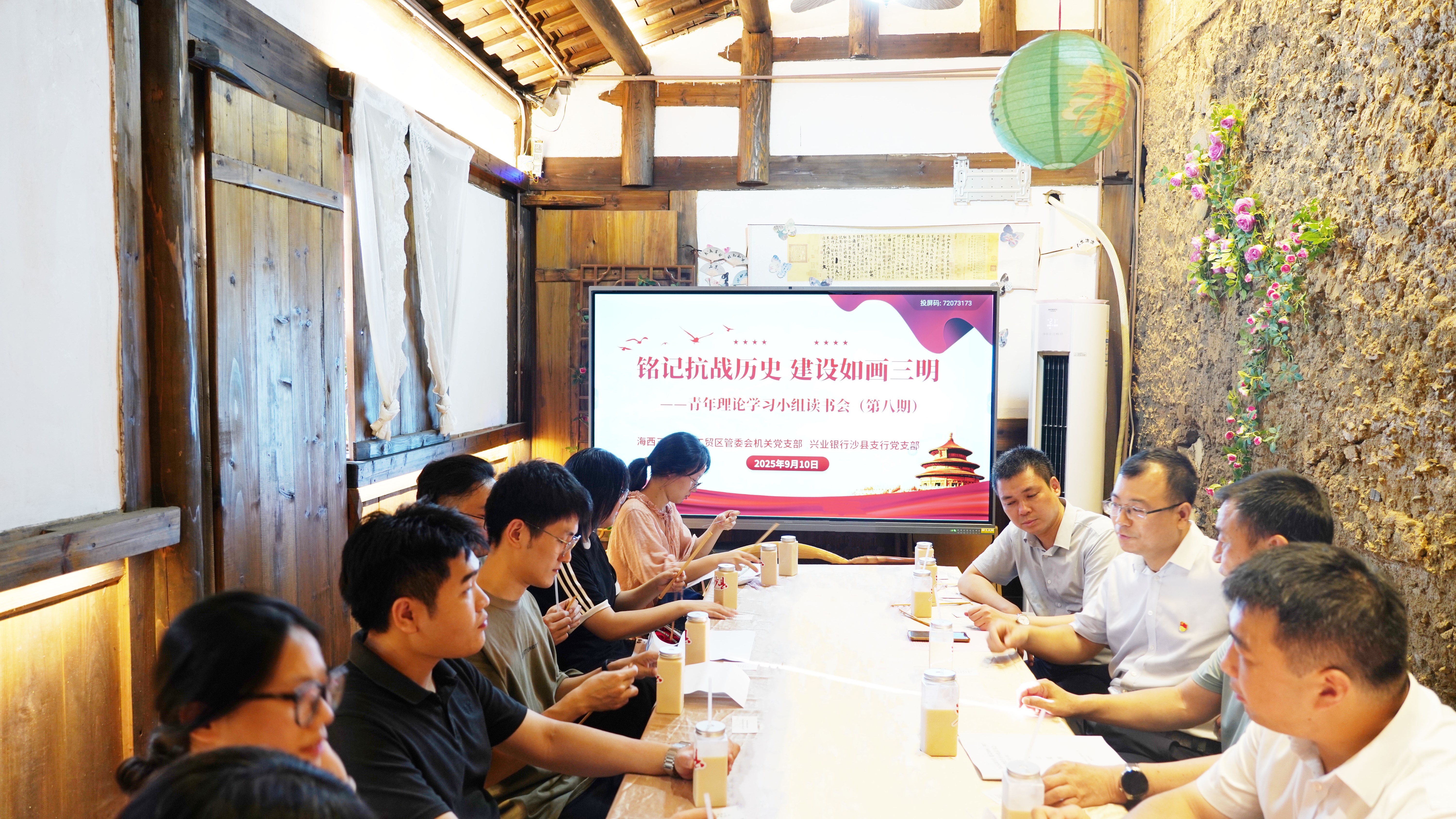 2025-09-11為紀(jì)念中國人民抗日戰(zhàn)爭(zhēng)暨世界反法西斯戰(zhàn)爭(zhēng)勝利80周年,全面貫徹落實(shí)習(xí)近平總書記關(guān)于傳承弘揚(yáng)紅色文化的重要指示精神,加強(qiáng)黨支部之間的交流與合作,持續(xù)深化“紅色合伙人”機(jī)制。9月10日,海西三明生態(tài)工貿(mào)區(qū)黨工委舉辦“銘記抗戰(zhàn)歷史 建設(shè)如畫三明”(第八期)讀書分享會(huì)。海西三明生態(tài)工貿(mào)區(qū)管委會(huì)機(jī)關(guān)黨支部、沙縣興業(yè)銀行黨支部?jī)?yōu)秀黨員代表參加。 在講解員的帶領(lǐng)下,黨員干部走進(jìn)興國寺,通過聆聽革命故事,凝視歷史文物,追尋革命先輩的足跡,深入了解興國寺的革命歷史和文化內(nèi)涵,深刻感受... -